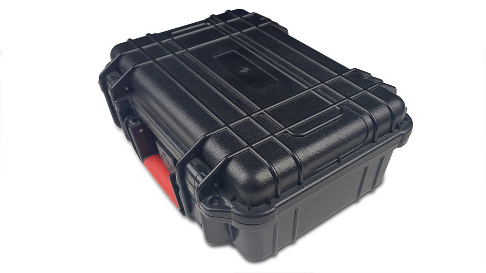- Impact-resistant black ABS plastic. The design includes a carrying handle.